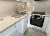 V celom byte sú znížené stropy s bodovým osvetlením, nová elektroinštalácia, nové zásuvky a vypínače, obložkové zárubne a interiérové dvere, nové stierky na stenách. Podlaha v kuchyni, kúpeľni, WC a celej chodbe je z veľkoformátových keramických dlaždíc, v oboch izbách laminátová podlaha. Kuchynská linka v tvare "U" je na mieru s bezúchytovým otváraním dverí a so vstavanými spotrebičmi: chladnička, elektrická rúra, indukčná varná doska, umývačka riadu, digestor. Drez je kameninový s úspornovou vodovodnou batériou. Vstupné dvere do bytu sú bezpečnostné. V obývacej izbe je predpríprava na klimatizáciu a v chodbe priestor na vstavanú skriňu.